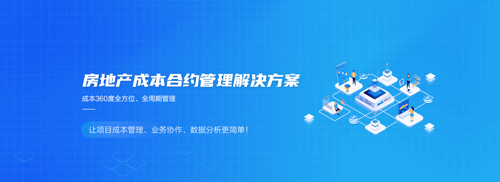 咨詢梳理,快速實施;成本科目+合約規(guī)劃雙重管控;成本、 財務(wù)一體化應(yīng)用協(xié)同;成本數(shù)據(jù)可視化,項目高效決策分析。